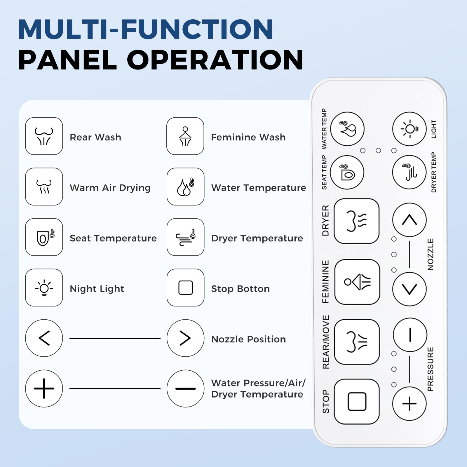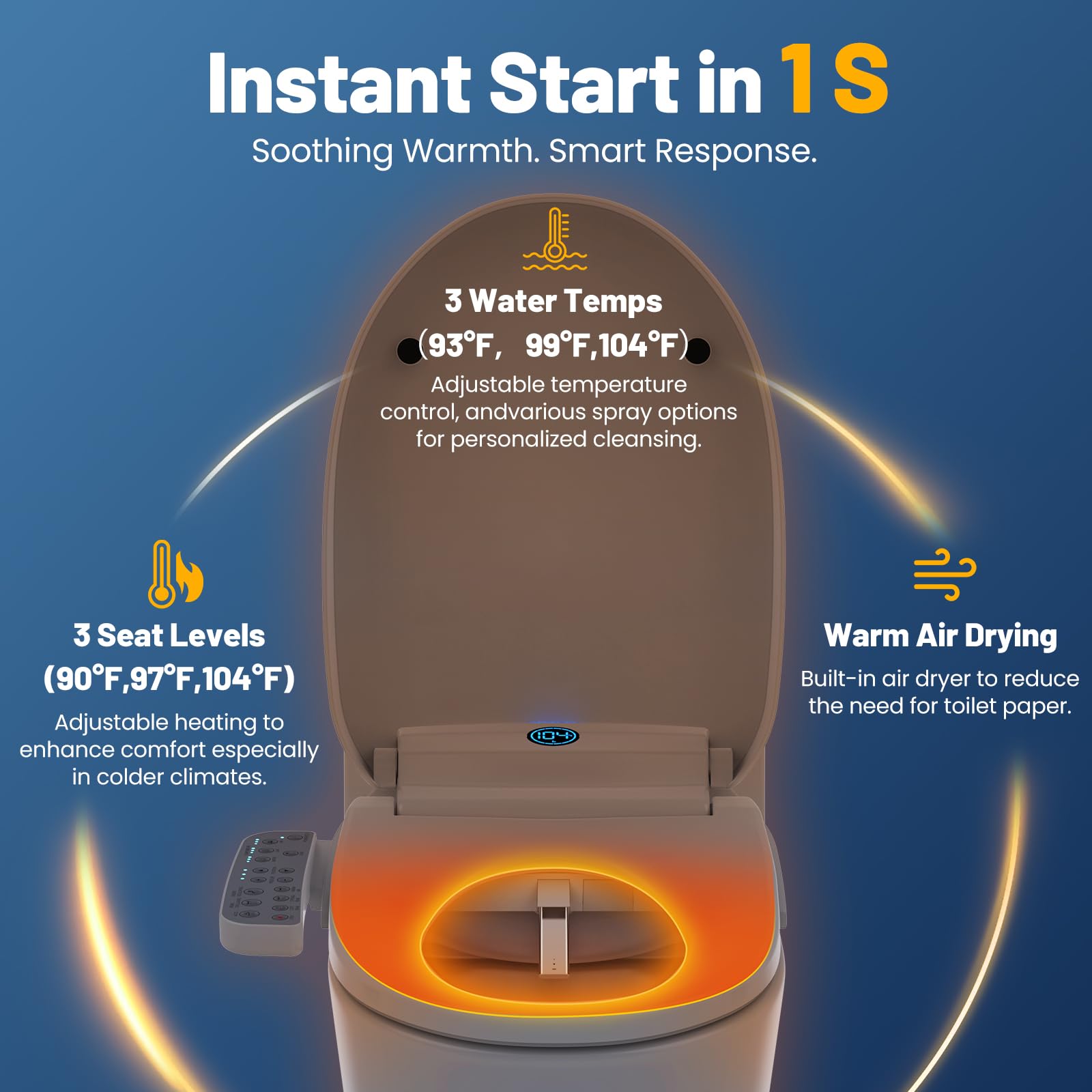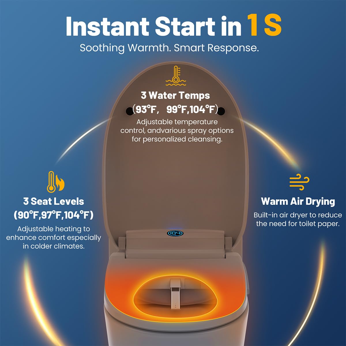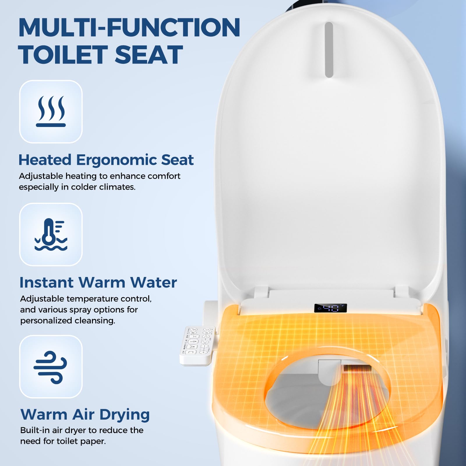 Convenient & Thorough Drying: After washing, enjoy the hands-free convenience of the comfort air dryer. This gentle, warm air function reduces the need for toilet paper, promoting better hygiene while keeping you comfortably dry.