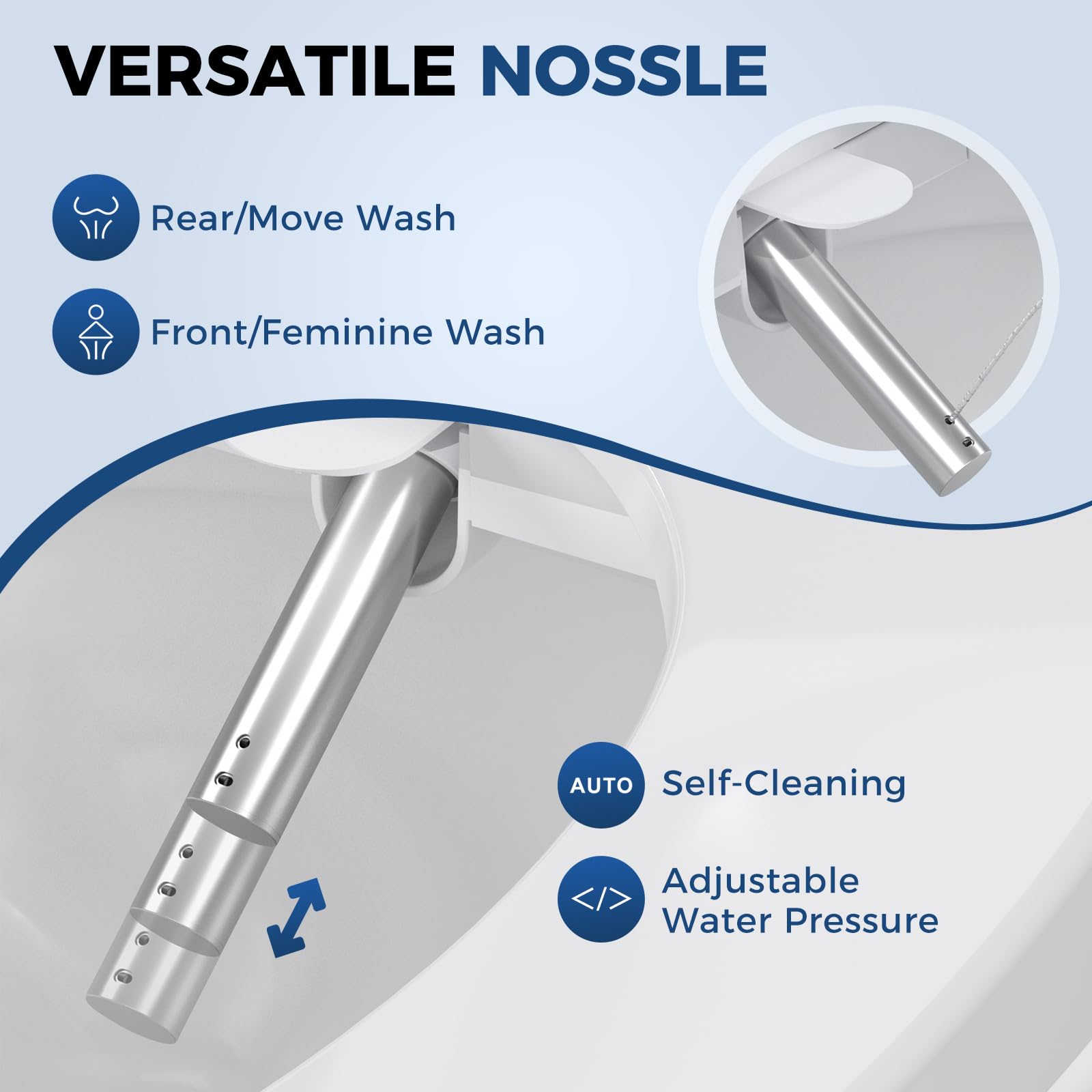 Targeted Cleansing with Adjustable Washing: The bidet toilet seat provides customizable rear and feminine washing functions. Easily adjust water temperature and pressure to your preference for a hygienic, spa-like cleanse that is superior to paper alone.